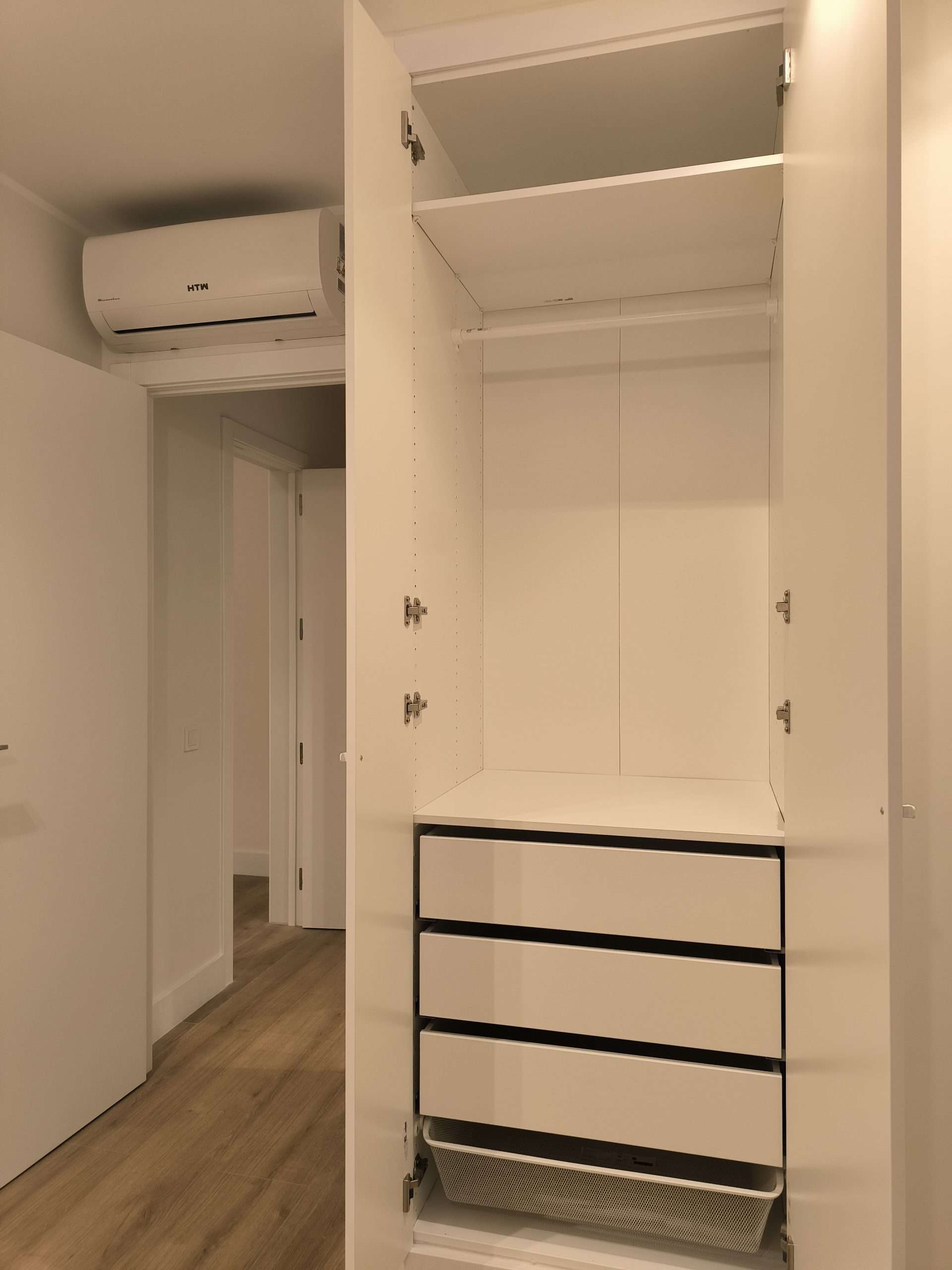 Optimización del almacenamiento: Implementamos armarios empotrados estratégicamente para aprovechar al máximo cada metro cuadrado.