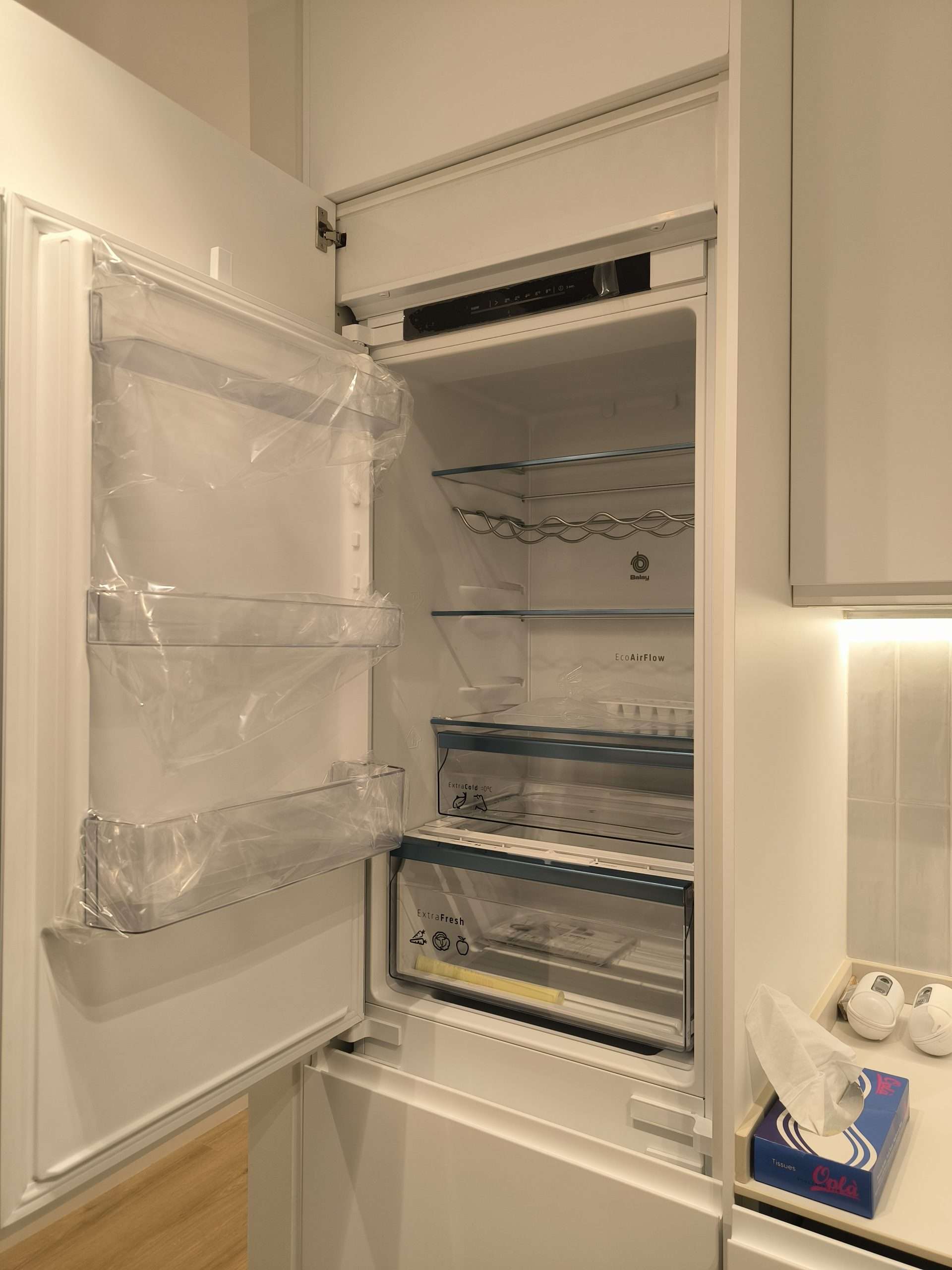 Vitrocerámica y nevera nuevas, listas para estrenar.