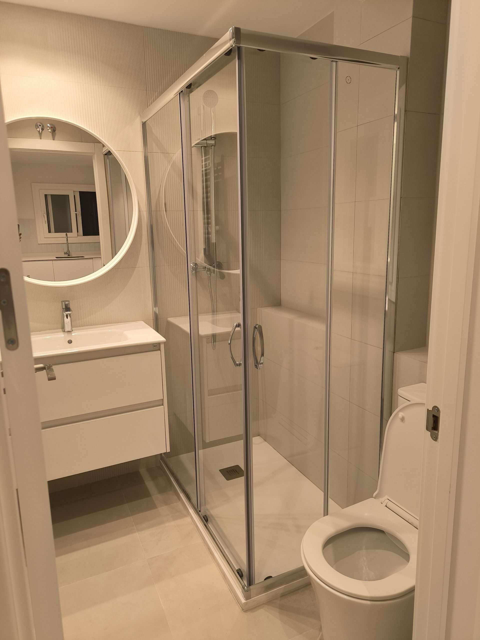 Sanitarios completamente renovados, incluyendo lavabo, retrete y grifería.